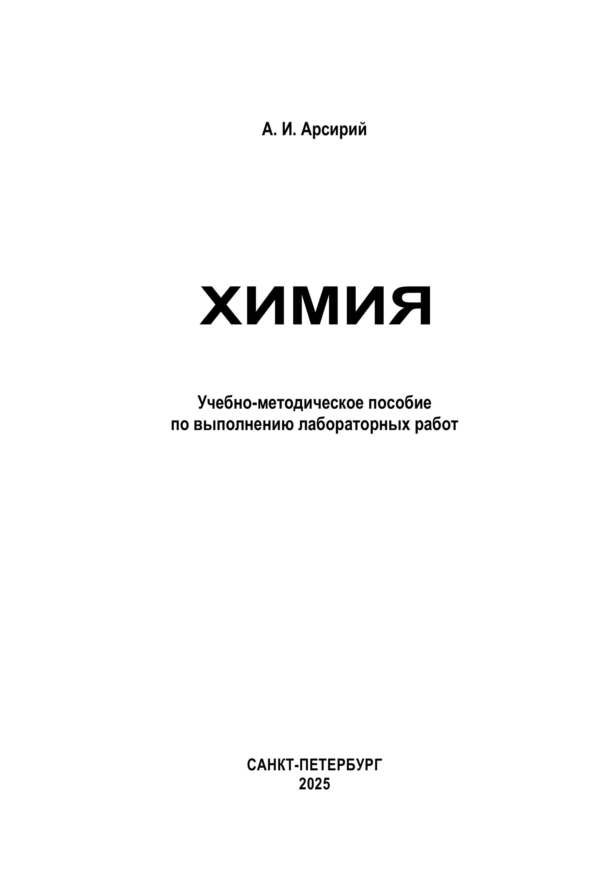 Арсирий, Алла Ивановна Химия [Электронный ресурс] : учебно-методическое пособие по выполнению лабораторных работ / А. И. Арсирий ; рец. С. А. Панихидников, 2025. - 36 с.